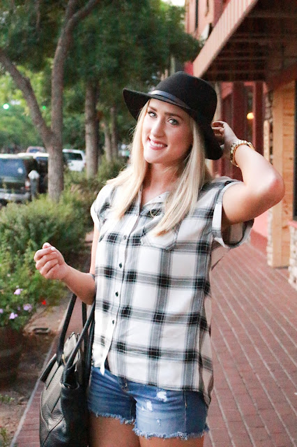 Mossimo Top // American Eagle Shorts (on sale for $25!) // BP. Booties (obsessed with these!) // Kate Spade Bag (similar linked) // Michael Kors Watch // F21 Hat (similar option)